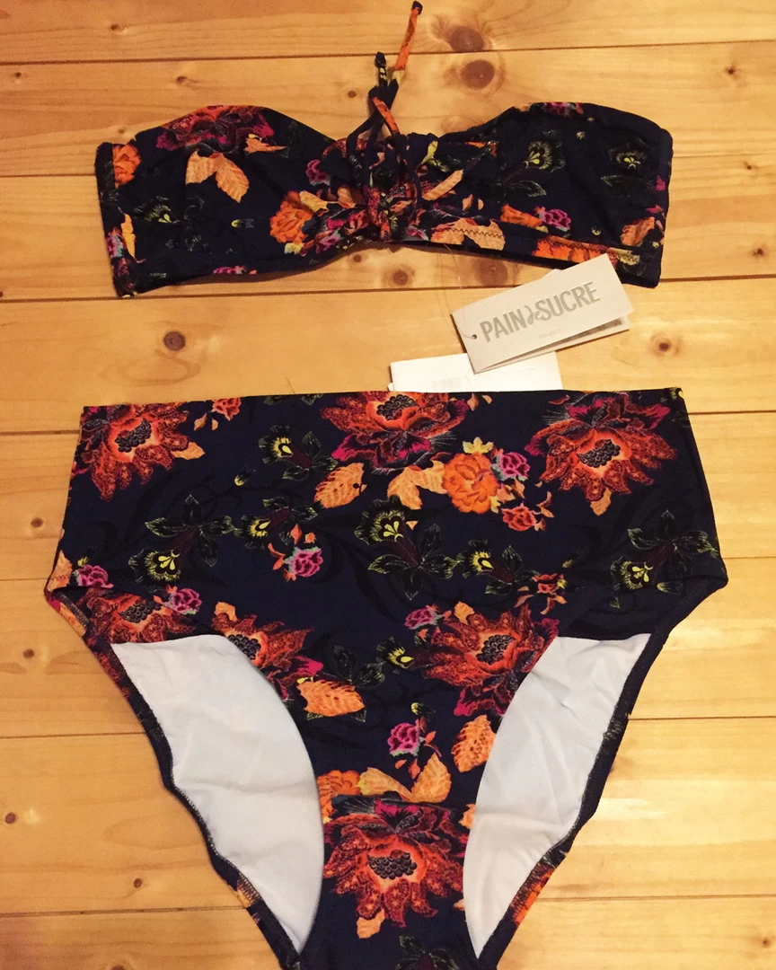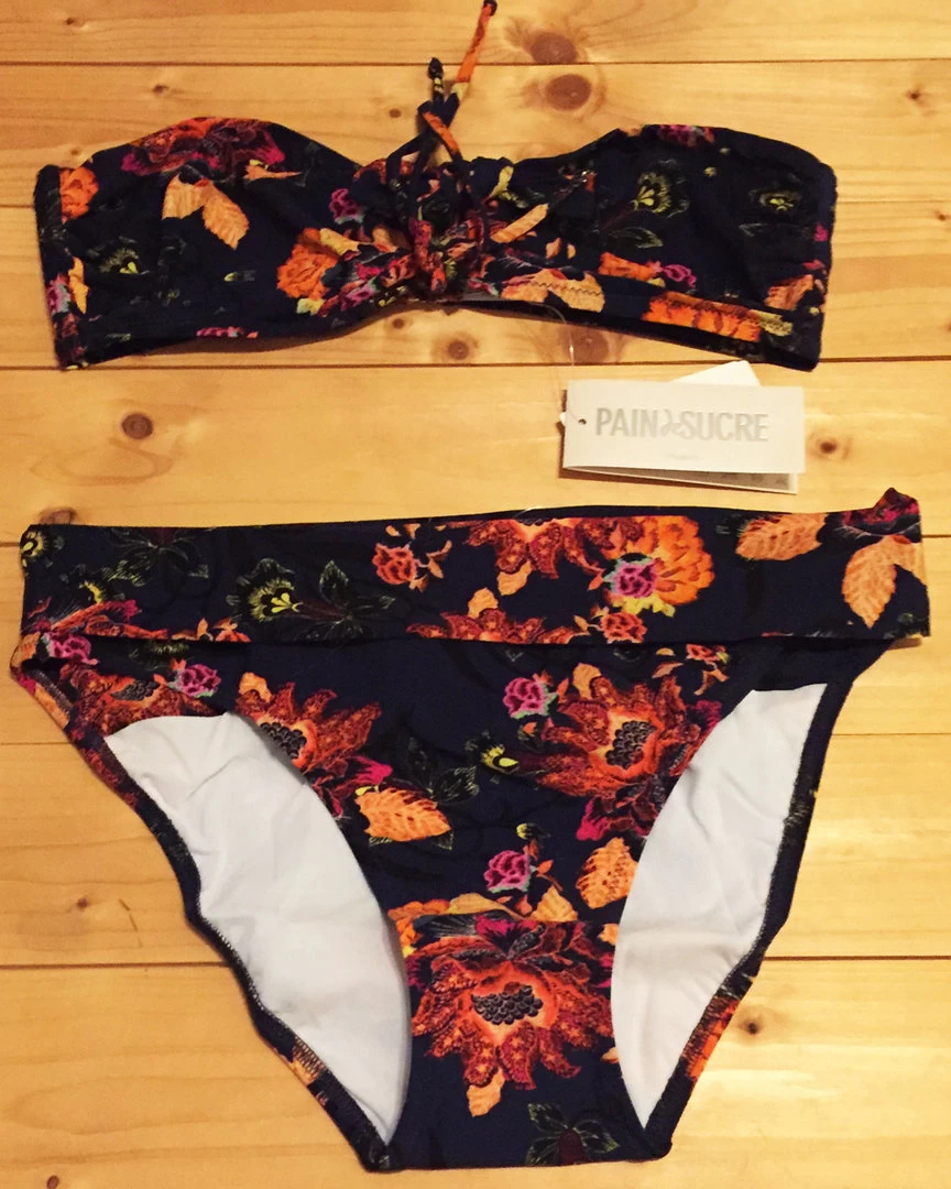Tropische Verführung: Dieser dunkelblau geblümte Bandeau-Bikini bringt Ihr Dekolleté durch die raffinierte Knotung verführerisch zur Geltung.