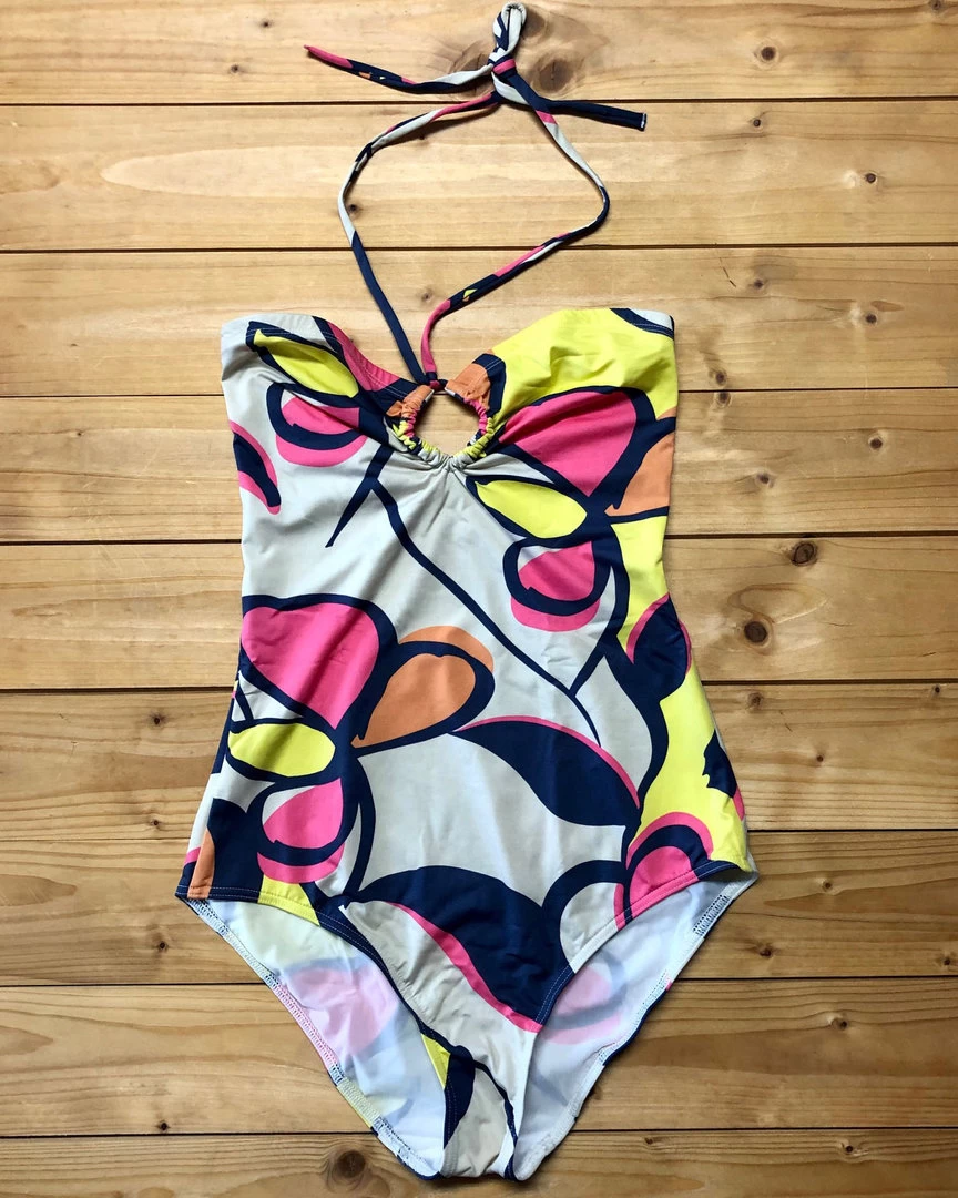 Bandeau-Einteiler mit Neckholder, gefüttert.